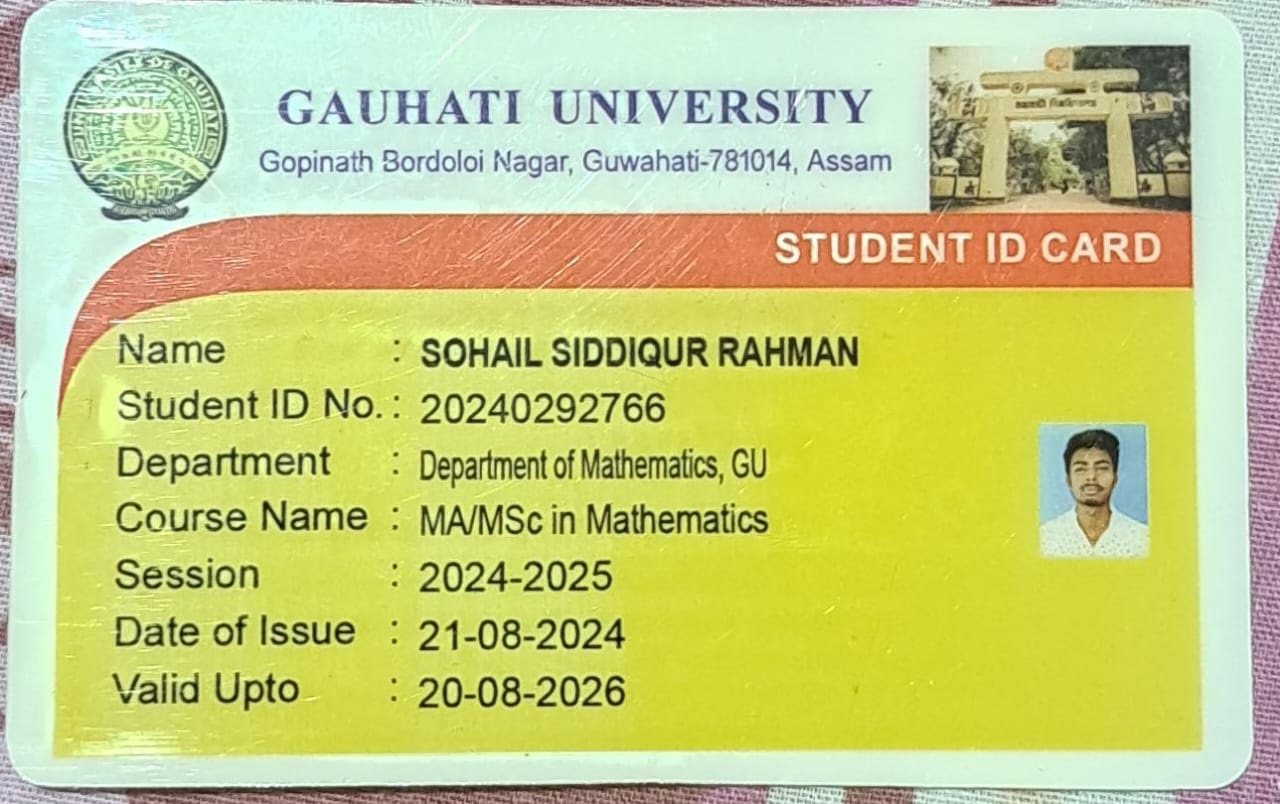 19 | MATHEMATICS | 2024 | Sohail Siddiqur Rahman | B. Sc. Mathematics | 2024 | Gauhati University | M. Sc. | View File |