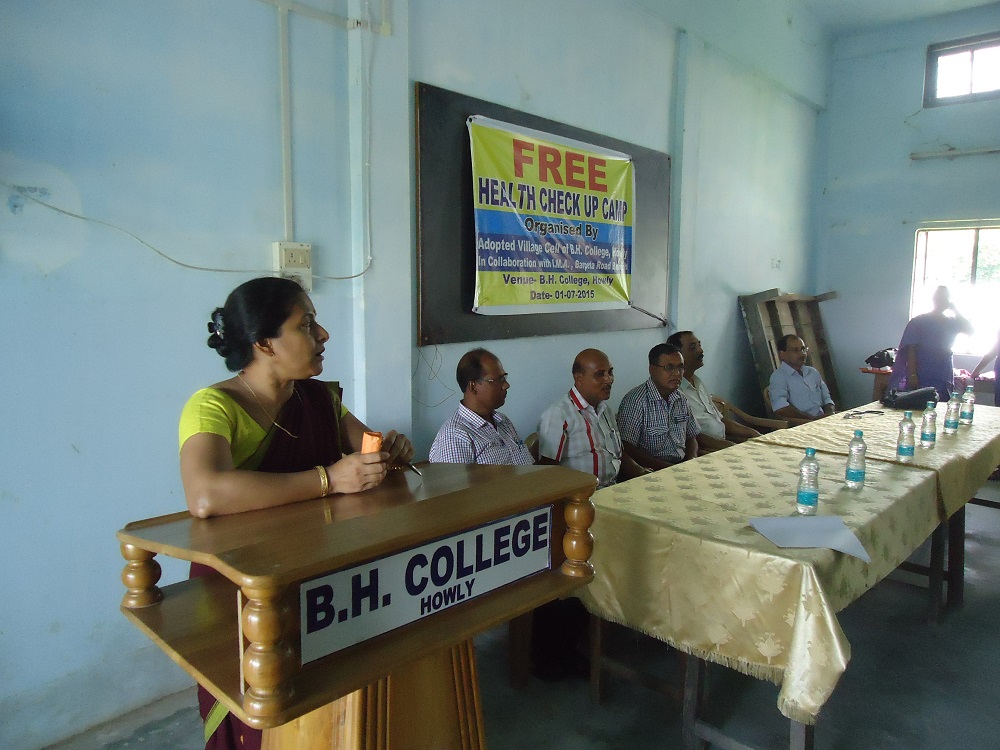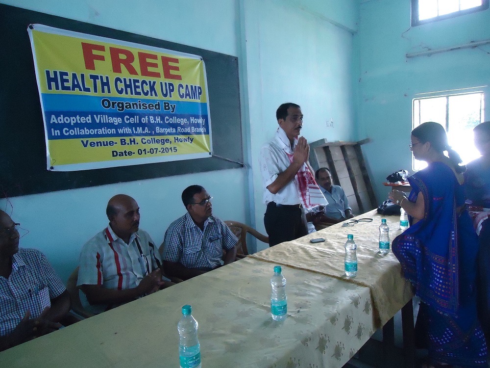 Description: Adopted Village Cell of B. H. College organised a free health checkup camp in collaboration with IMA, Barpeta Road on 01/07/2015.