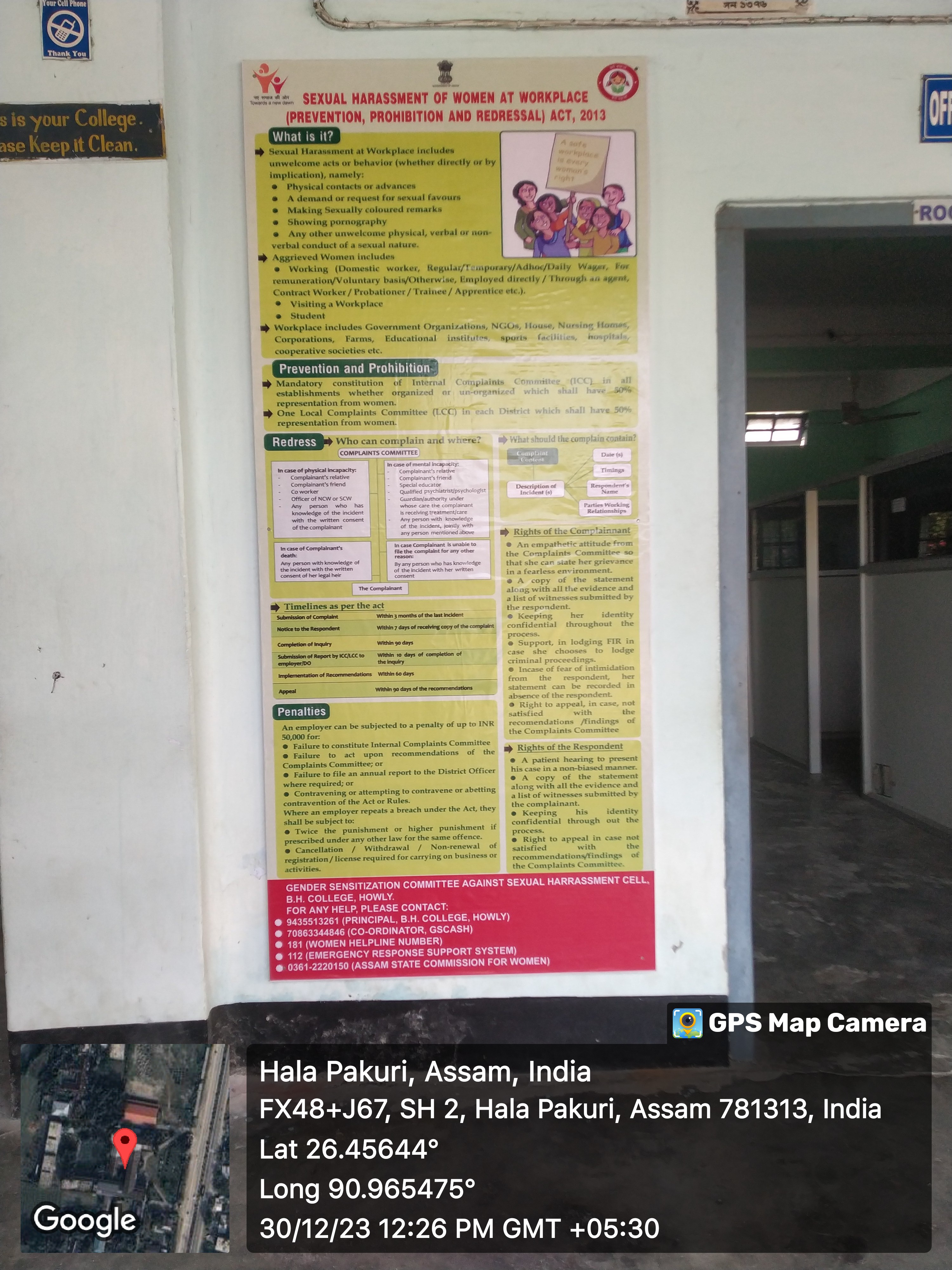 Description: With reference to Govt. Letter: Ecf No.421091/8, dated Dispur 19 December 2023, a Billboard showing penal consequences of Sexual Harassment as per provision of section 19(b) of the Sexual Harassment of Women at Workplace Act, 2013 has been installed in B.H. College on 30 December, 2023.
