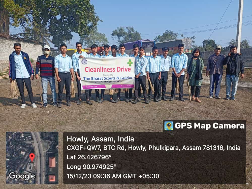 Description: A “Cleanliness Drive” Program was organized by The Bharat Scouts & Guides Cell, B. H. College, Howly on 15-12-2023 at Howly Municipal Area.
