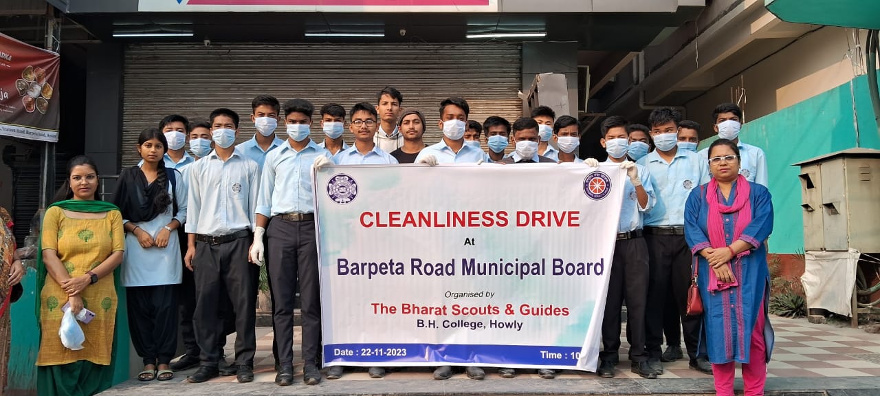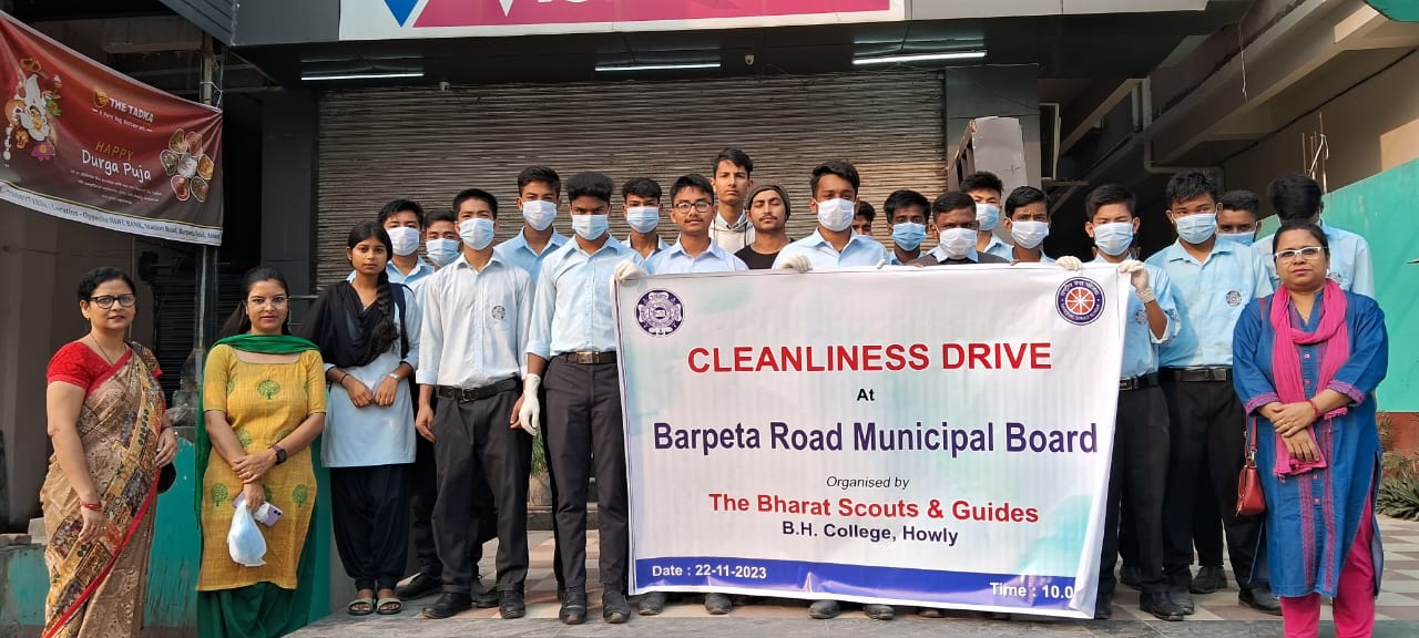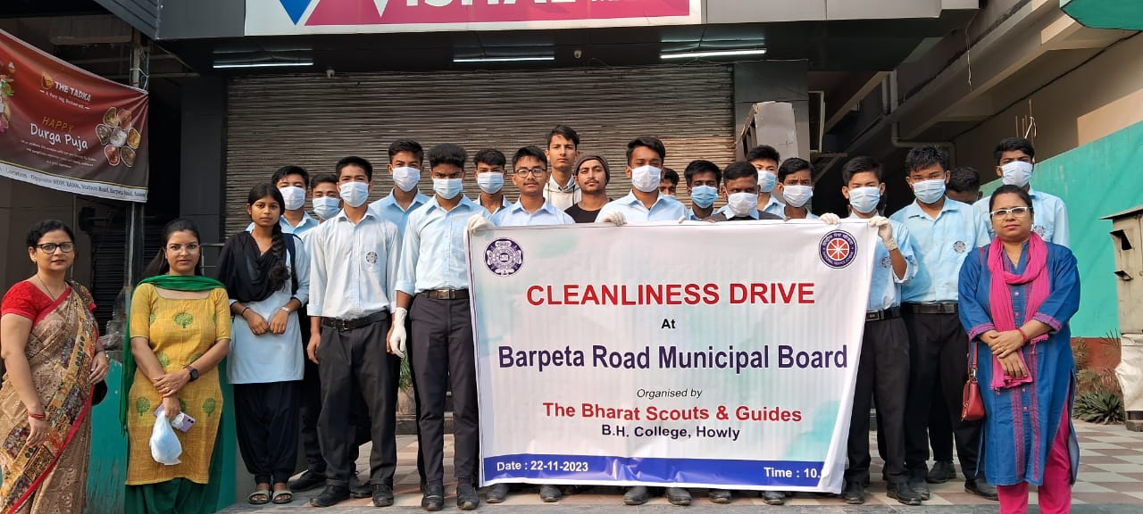 Description: A “Cleanliness Drive” Program was organized by The Bharat Scouts & Guides Cell, B. H. College, Howly on 22-11-2023 at Barpeta Road Municipal Area.