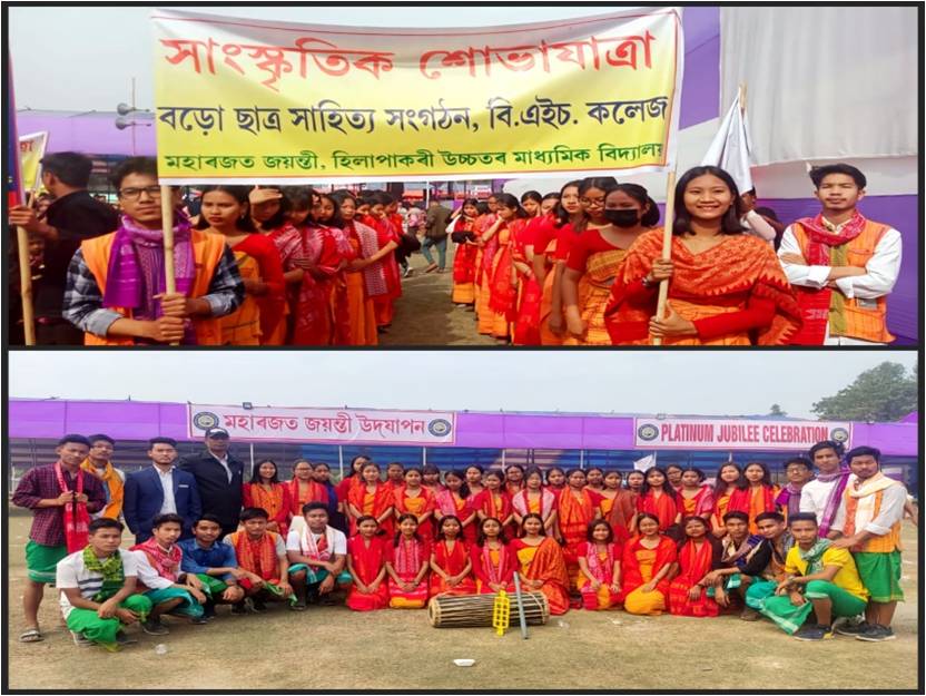 Description: Cultural Rally participated by the Bodo students of B.H. College, Howly on account of Platinum Jubliee celebration by Halapakuri Senior Secondary School.