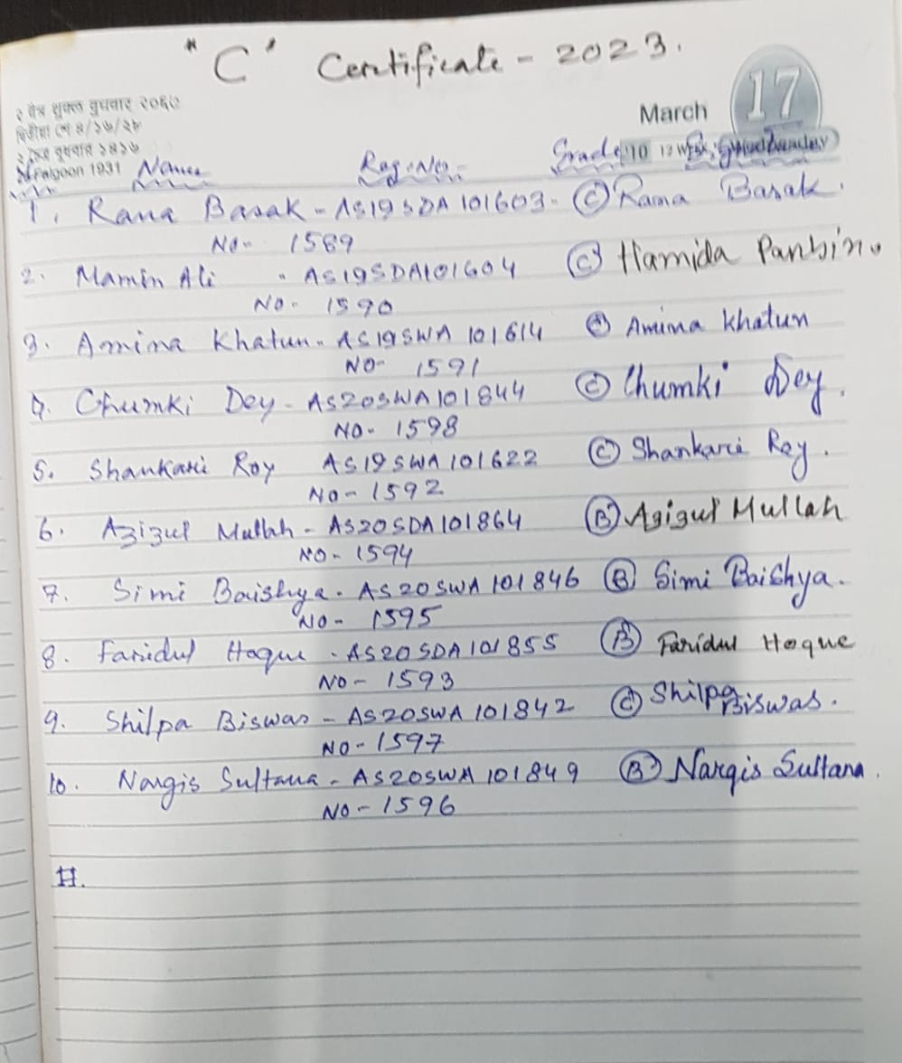 Description: Total 11 cadets achieved C certificate in the year 2023