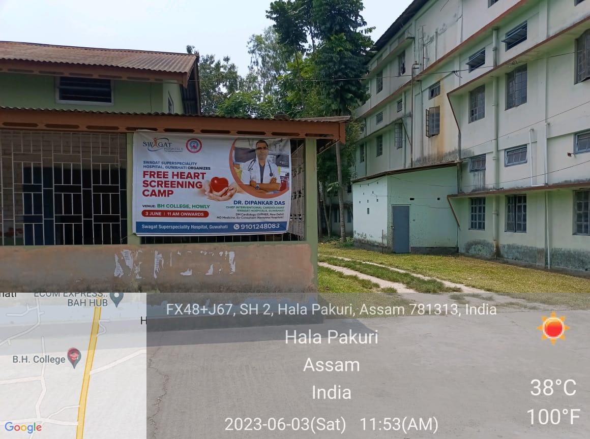 Description: On 3rd June, 2023, a Free Heart Screening Camp was organized by the Medical Cell of B.H. College, Howly in collaboration with Swagat Hospital, Maligaon, Guwahati at B.H. College, Howly especially for teaching and non- teaching staff of the college. The Heart Screening Camp was headed by renowned cardiologist Dr. Dipankar Das. Along with Dr. Das his team members also offered their service. The venue of the event was B.H. College Guest House from 11-00 am onwards. Almost all the teaching as well as non teaching staff participated in the health check-up.
