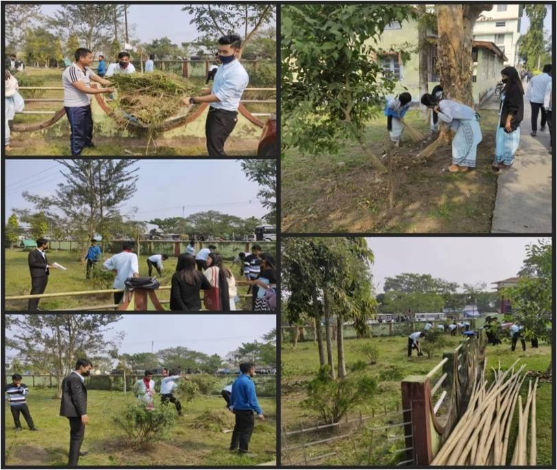 Description: Cleanliness drive organised by BSLA on 2nd February 2022 at B.H. College campus on the day before Saraswati Puja.