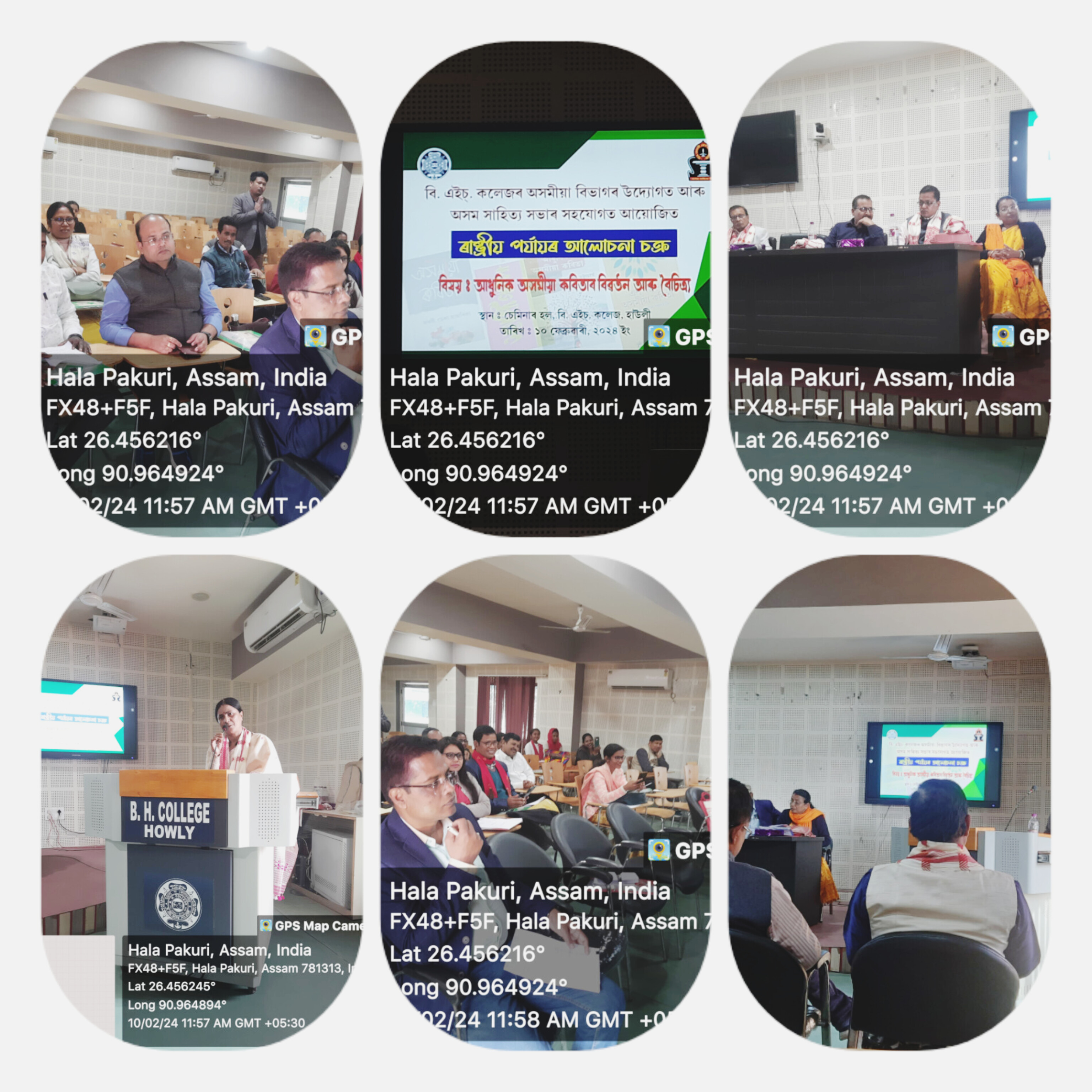 Description: Today, on February 10, 2024, the Assam Sahitya Sabha and B.H. College's Assamese department jointly organized a National Seminar on the topic "Modern Assamese Poetry's Evolution and Diversity." This event, now a national-level discussion circle, began with the inauguration of Dikshita Nath�s Bargeet . The program started with welcoming song of Assam Sahitya Sabha. Dr. Bhushan Chandra Pathak, Principal,B.H.College read out poems and delivered an inspiring speech. The Keynote Adress of the discussion circle was given by Dr. Gitanjali Hazarika, Associate professor of the Assamese department of Arya Vidyapeeth College. The event was graced by the presence of Dr. Upendrajit Sharma, the chief editor of the Assam Sahitya Sabha, and renowned poet Dr. Hiren Choudhury, who is also the executive president of the coordination committee of the Assam Sahitya Sabha's poets' meet. Dr. Gitanjali Hazarika, Dr. Sultan Ali Ahmed, and Dr. Renu Hazarika, along with 25 researchers from various parts of Assam, actively participated in the successful discussion circle, shedding light on the evolution and aesthetics of modern Assamese poetry. Dr. Hemanta Deka beautifully coordinated the discussion circle, ensuring a smooth and engaging event.