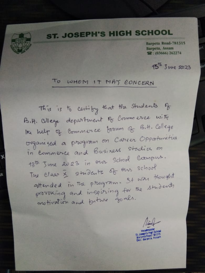Report of Event Organised by Student of Commerce of B.H.College On Career Opportunities in Commerce and Business Studies