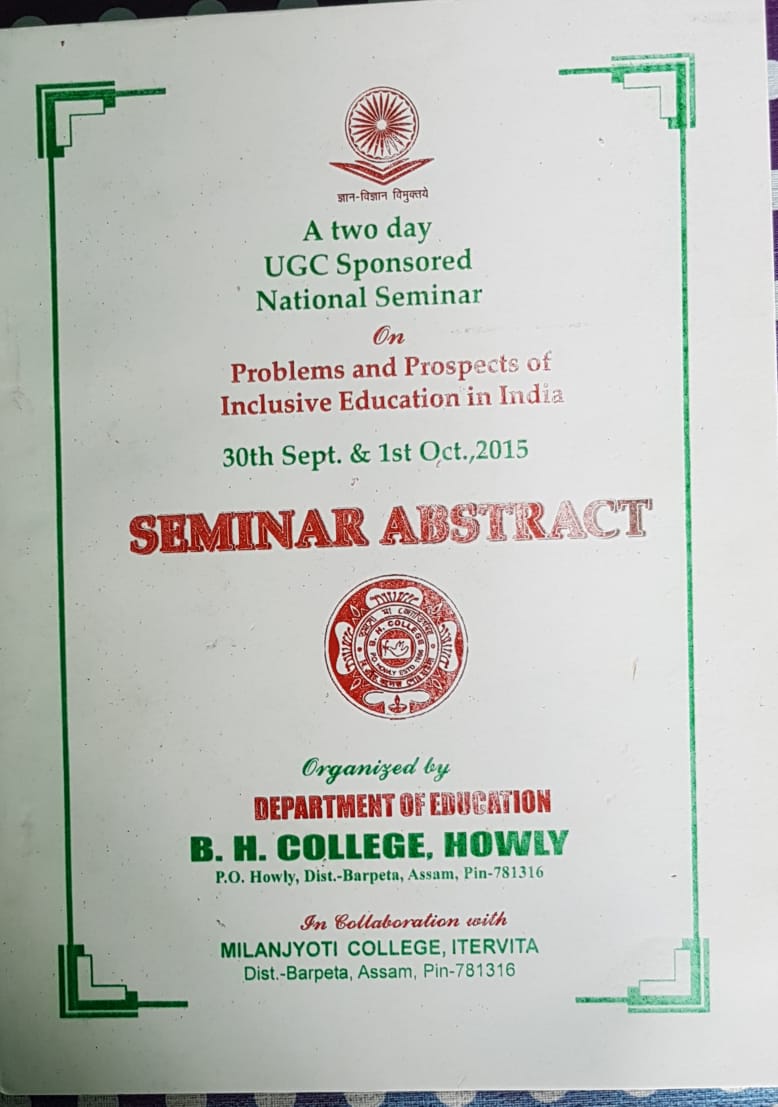 Description: UGC sponsored National seminar on problems and prospects of inclusive education