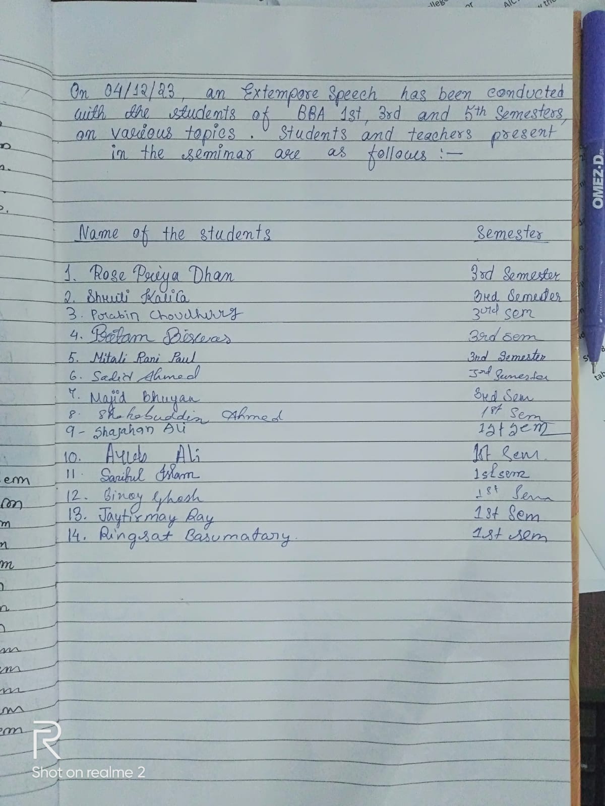 Description: An Extempore Speech Programme has been conducted with students of BBA 1st, 3rd and 5th semerters-2023. Students participated in the same attached herewith-