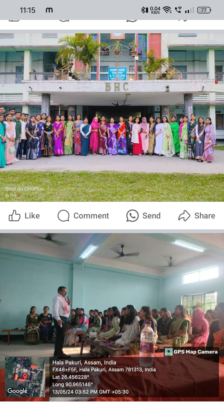 Description: The students of B. A 2nd and 4th Semester arrange a farewell programme for the 6th semester students. All the teachers of Hindi Department wished good luck to them for their better future. They also express their hopes that students will continue holding best position's in upcoming years.