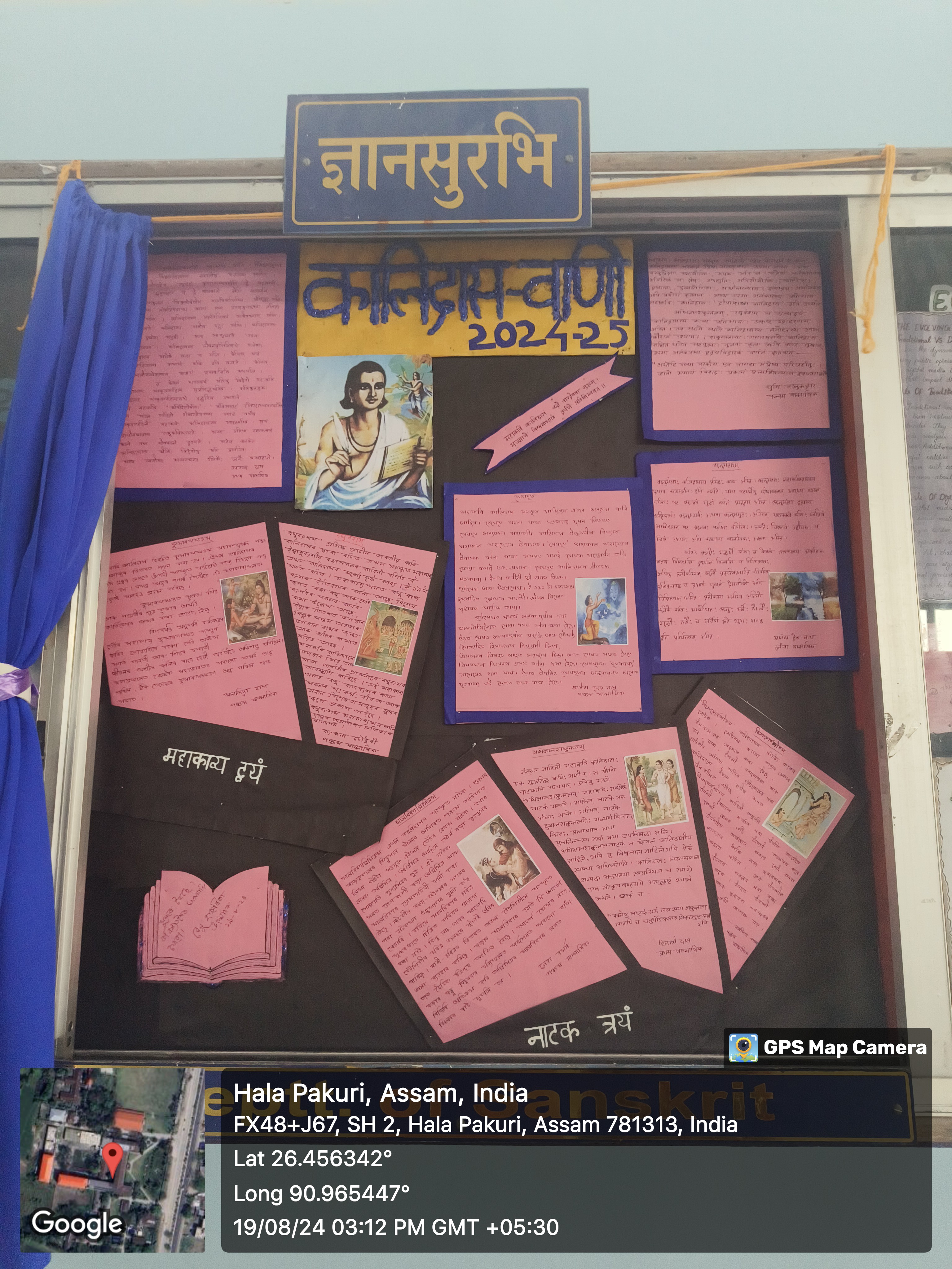 Description: The 5th Semester Students prepared a wall magazine which was inaugurated by Dr Renu Hazarika, Head of Assamese Department, BH College, Howly on 19th August, 2024. The theme of the magazine is the works of Kalidasa in the field of Sanskrit Literature.