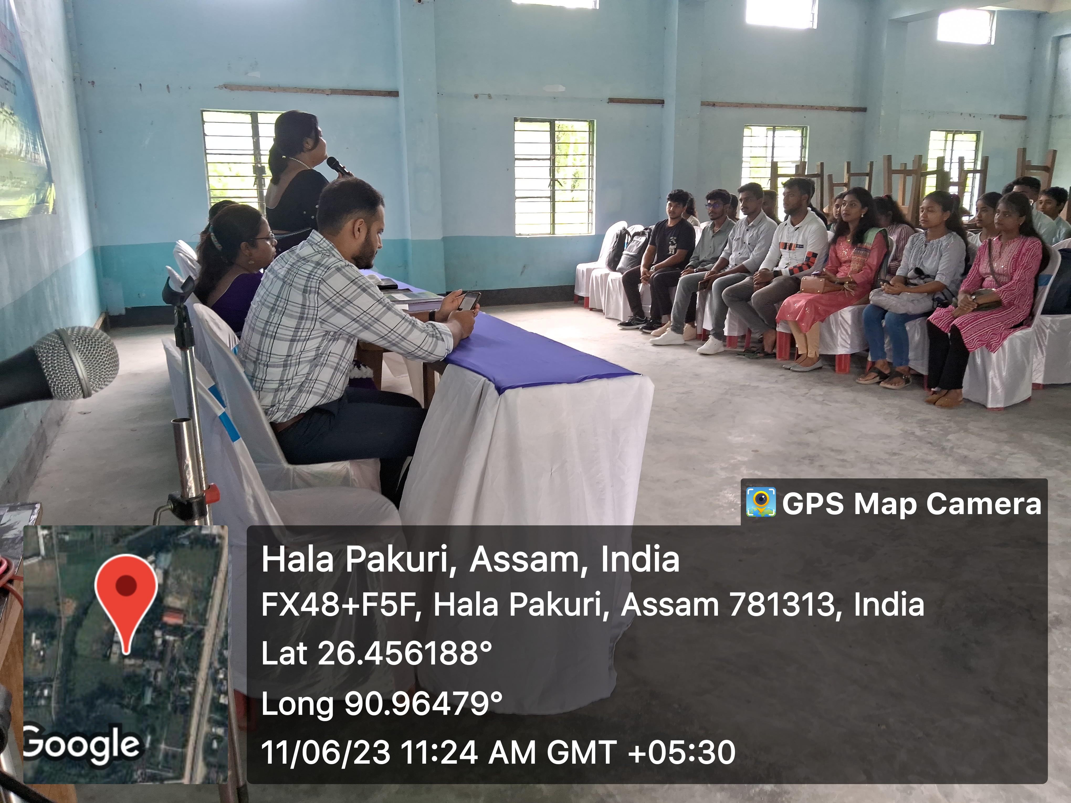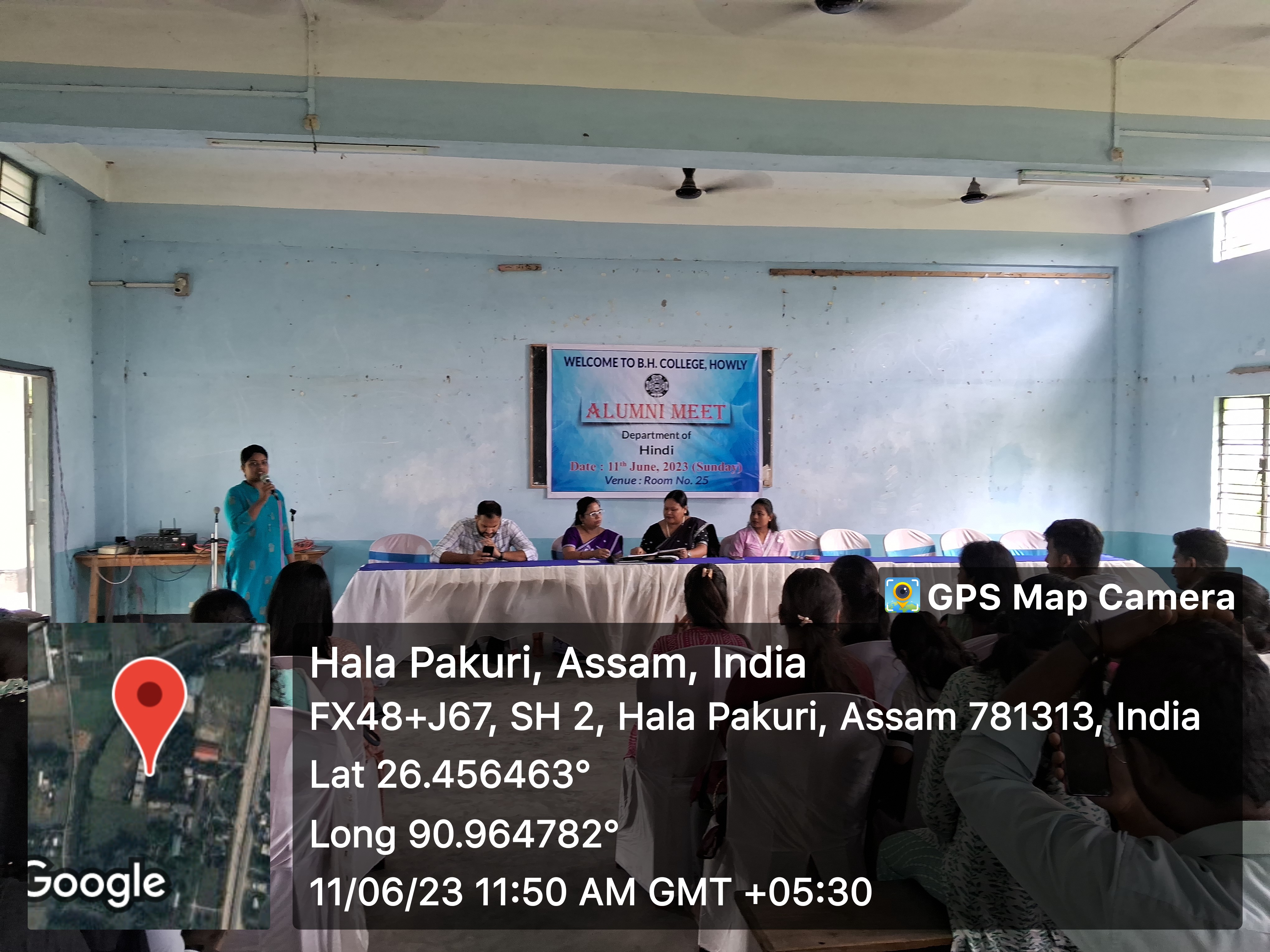 Description: Departmental Alumni Meet was held on 11/06/2023. The meeting was presided over by Dr. Rajkumari Das, H.O.D. Of the Department . Dr. Jinakshi Chutia, Assistant Professor, Department of Hindi welcomed the Alumni. Principal Dr. B.C. Pathak, S. Choudhury , President , college Alumni Association present as chief guest. In the meeting an alumni committee was formed and discussed about various future plans for the department. Few cultural activities were performed in the meeting.