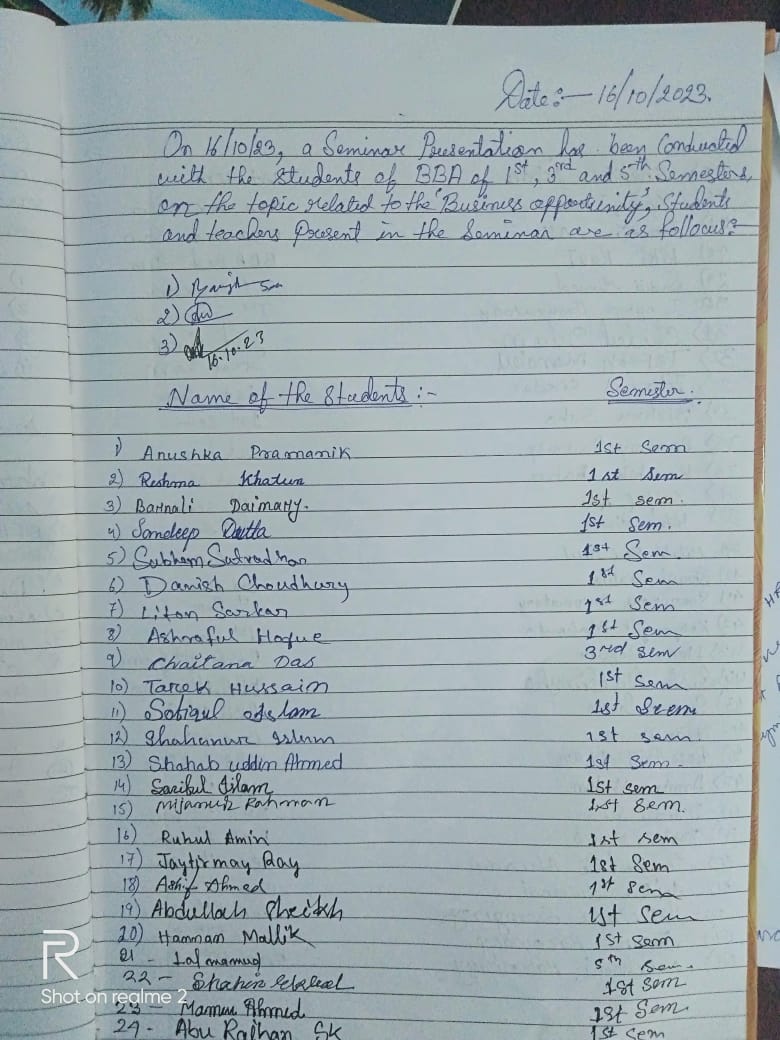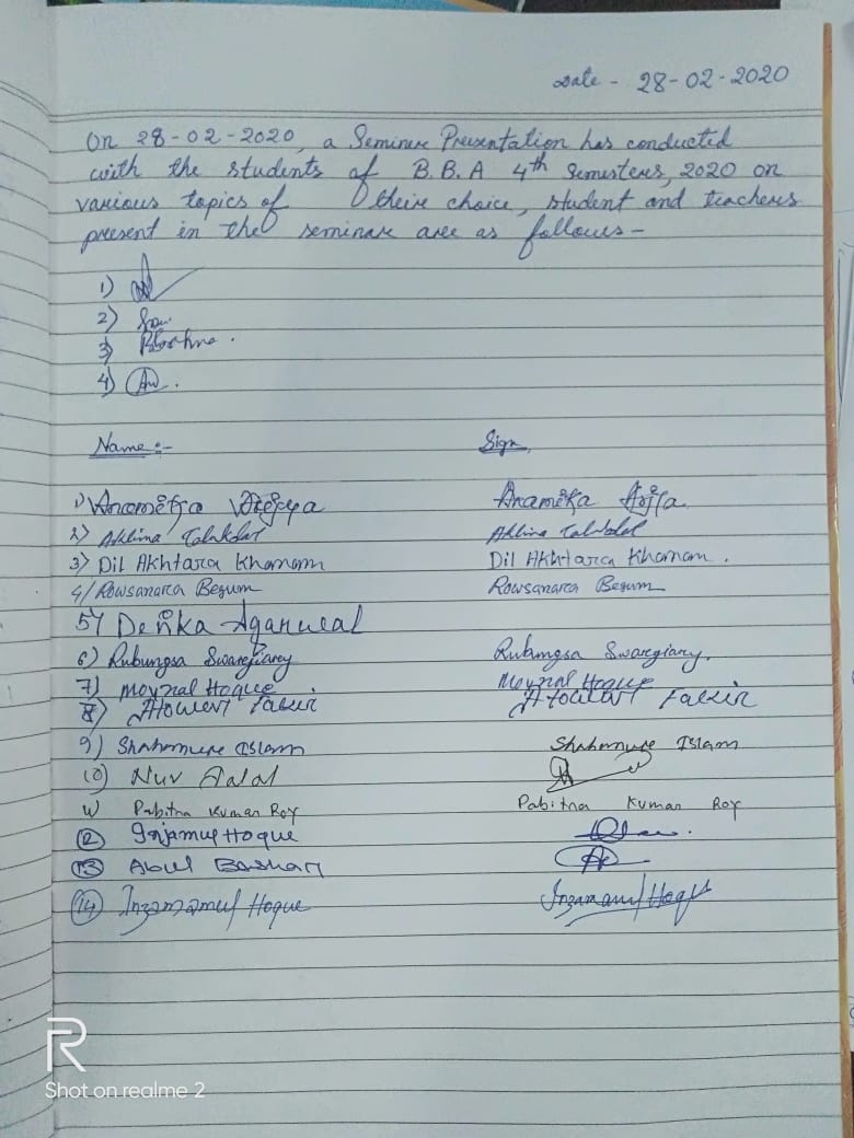 Description: A Seminar presentation was arranged for the BBA 4th Semester Students, they gave their PPT presentation on various topics of their choice. The students and teachers present there attached herewith..