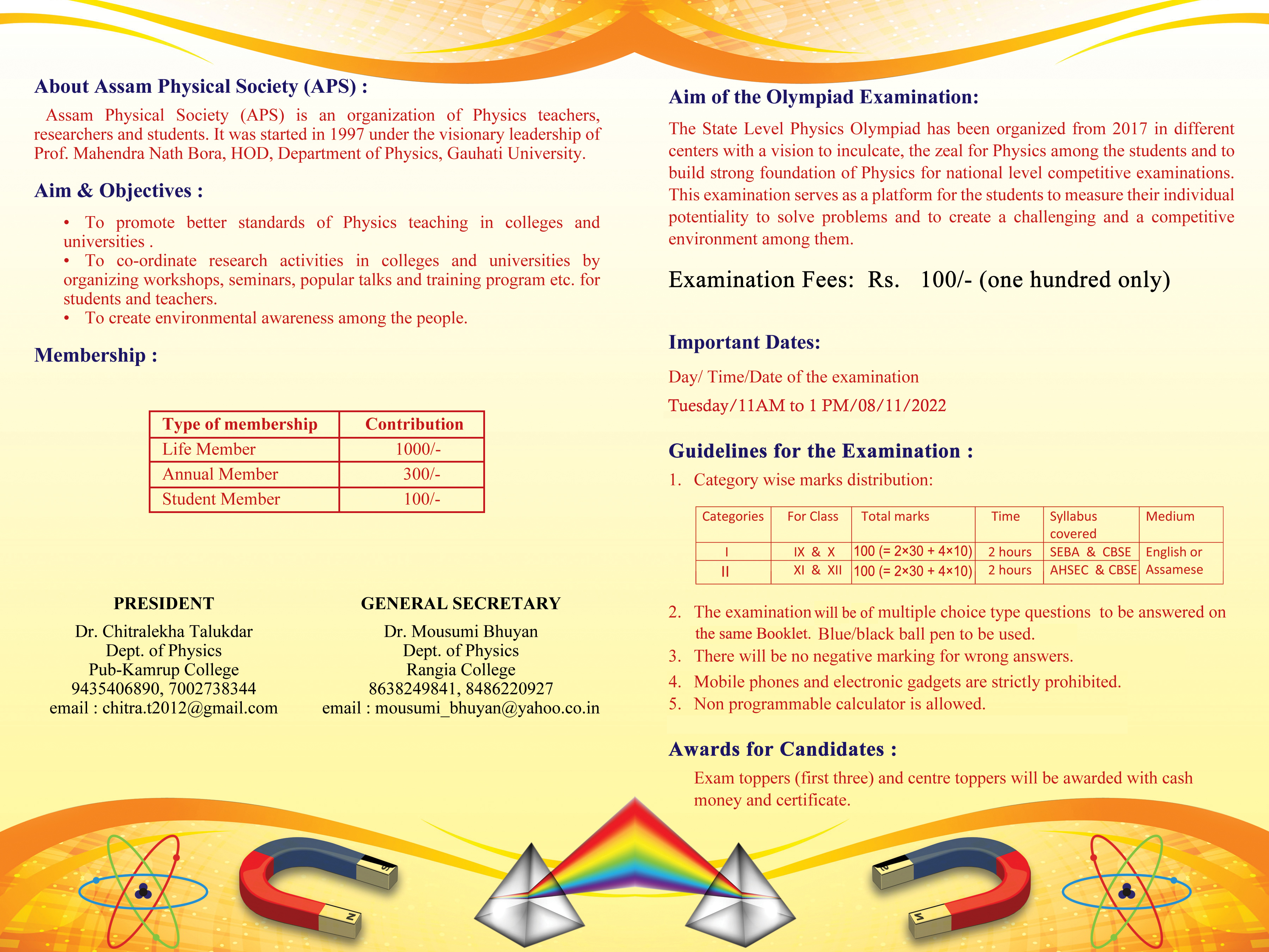 Description: Physics Department, B. H. College will conduct "Physics Olympiad Examination" for the students of class IX to XII on 8th November, 2022 under Assam Physical Society. Interested students can apply for the examination on or before 31st October, 2022. The application form along with rules have been attached herewith. The hard copy of the same should be submitted in Physics Department, B. H. College on working days.
