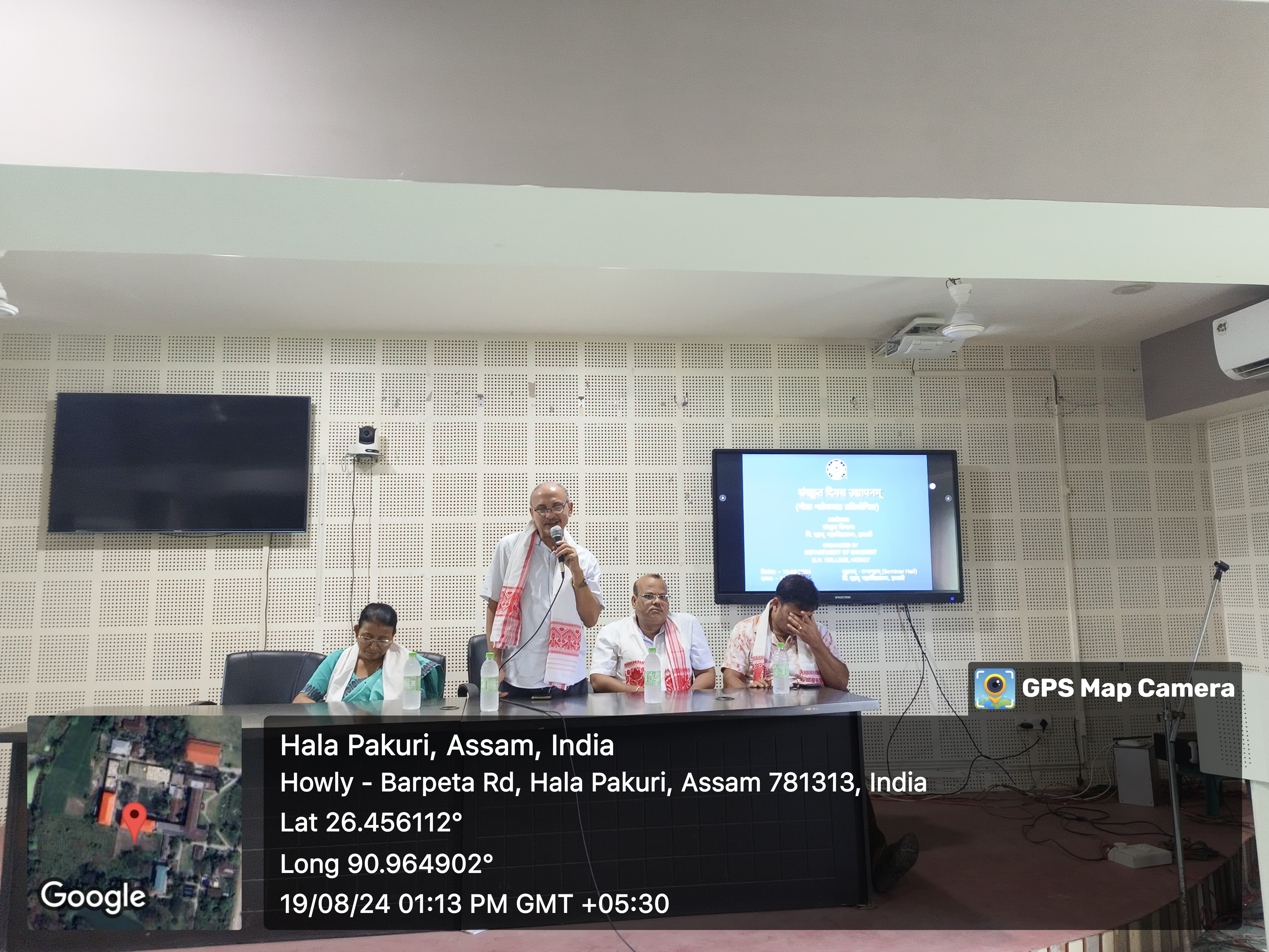 Description: The Department celebrated 'World Sanskrit Day' on 19th August, 2024 at Seminar Hall of B.H College, Howly. The world sanskrit day was celebrated at the shravana purnima tithi every year. On this day, department organized a 'Sloka Recitation Programme' among the Students. There are several students participated in the competition and three contestants were selected as first, second and third position winners. Through the chanting of sanskrit sloka students improve their cognitive functions including memory, verbal and spatial reasoning and overall brain function. Prof. Ranjit Bhuyan, Vice Principal of B.H. College, Dr. Dipmoni Das, Head of English Department, Nayan moni Hazarika, Head of History Department, Dr. Renu Hazarika, Head of Assamese Department, B.H. College and all the faculty members of Sanskrit department and History department were present in the Programme. The programme was held in a beautiful manner.