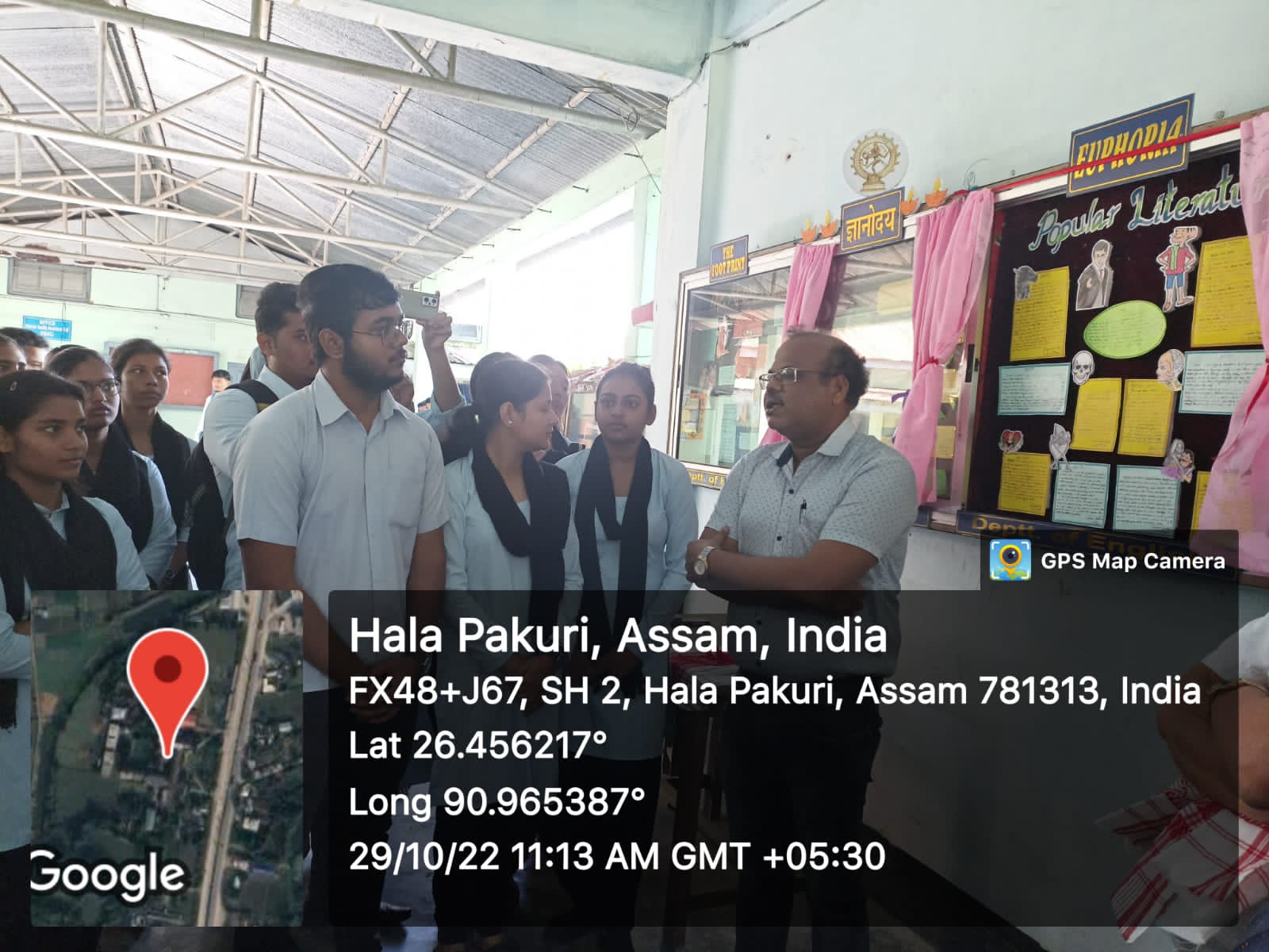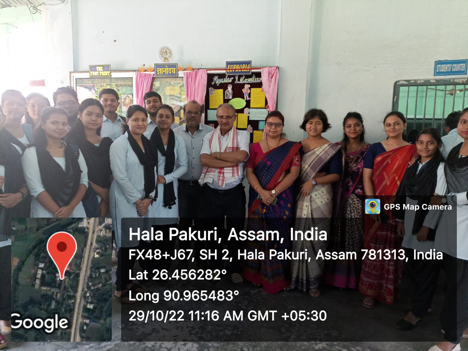 Description: The English department at B. H. College also publishes a wall magazine under the name "Euphoria." A wall magazine is a newsletter that is published on a notice board, often in an educational institution, where students and other staff members can post essays, poetry, drawings, and other types of works for sharing. They could take the shape of a collage that conveys a message.It covers several literature-related subjects each year. The department's teachers are in charge of supervising the pupils, who constantly contribute brilliant ideas. The wall magazine's theme for this year was "Popular Literature." The wall magazine was officially launched by Dr. Ranjit Bhuyan, vice principal of B.H. College, who also commended the students for their diligence and originality.