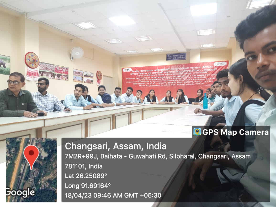 Description: An Educational Visit is made to the Central Institute of Petrochemicals Engineering and Technology, CIPET, CSTS, Guwahati, by the students of Sixth Semester, Chemistry Honours along with all the faculty members.