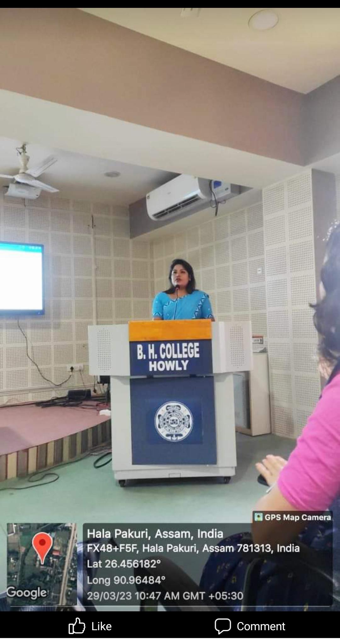 Description: The Department of Sanskrit was conducted an Extempore speech Programme on 29/03/2023 at Seminar Hall of B.H. College. On that pragramme the participation of the students of all semesters are a satisfactory one. They delivered their speech on some specific topics related to the field of Sanskrit literature. Mr. Nayanmoni Hazarika, head of the department of History, was also present as a special guest in that event and encourages the students.