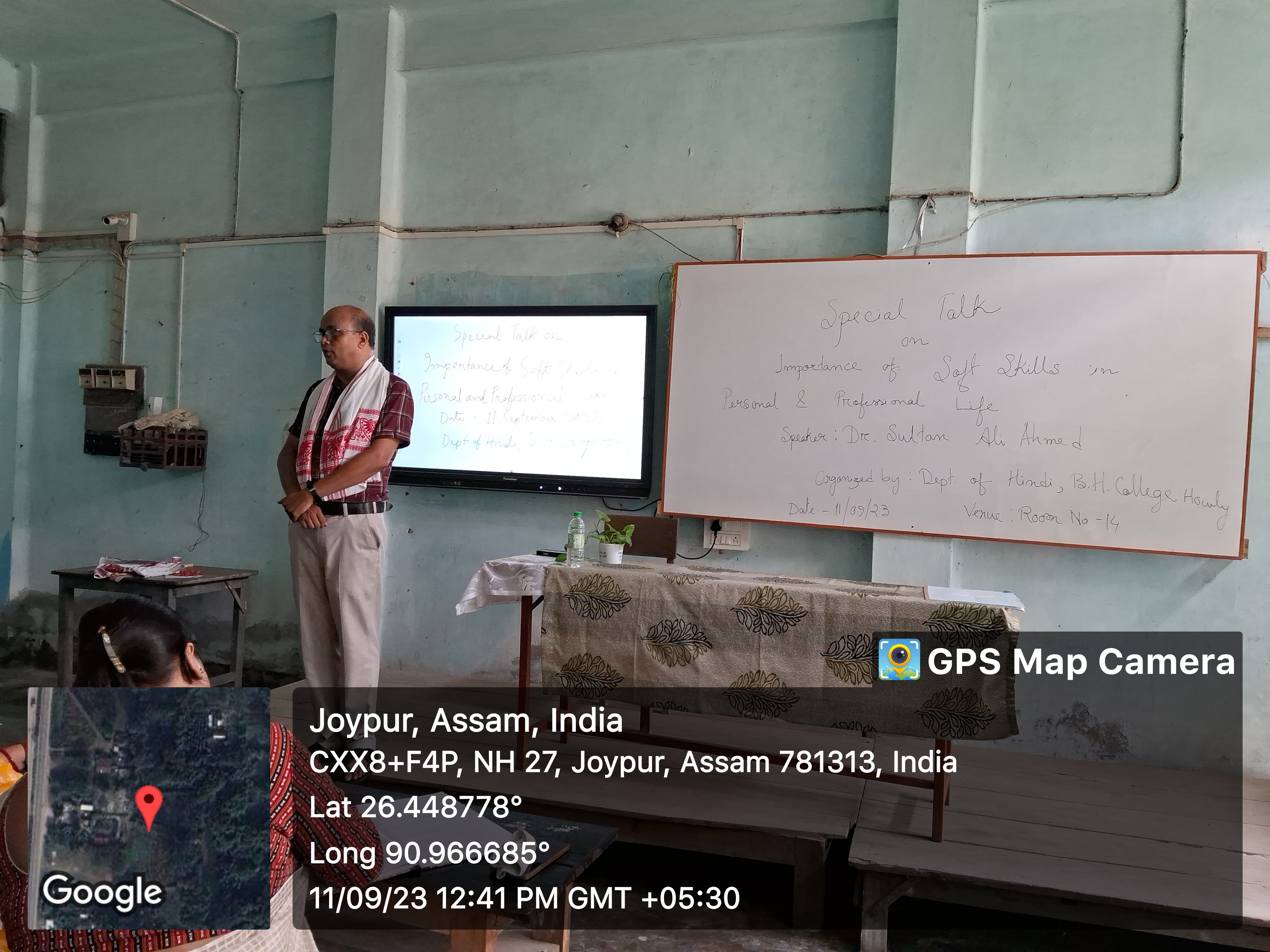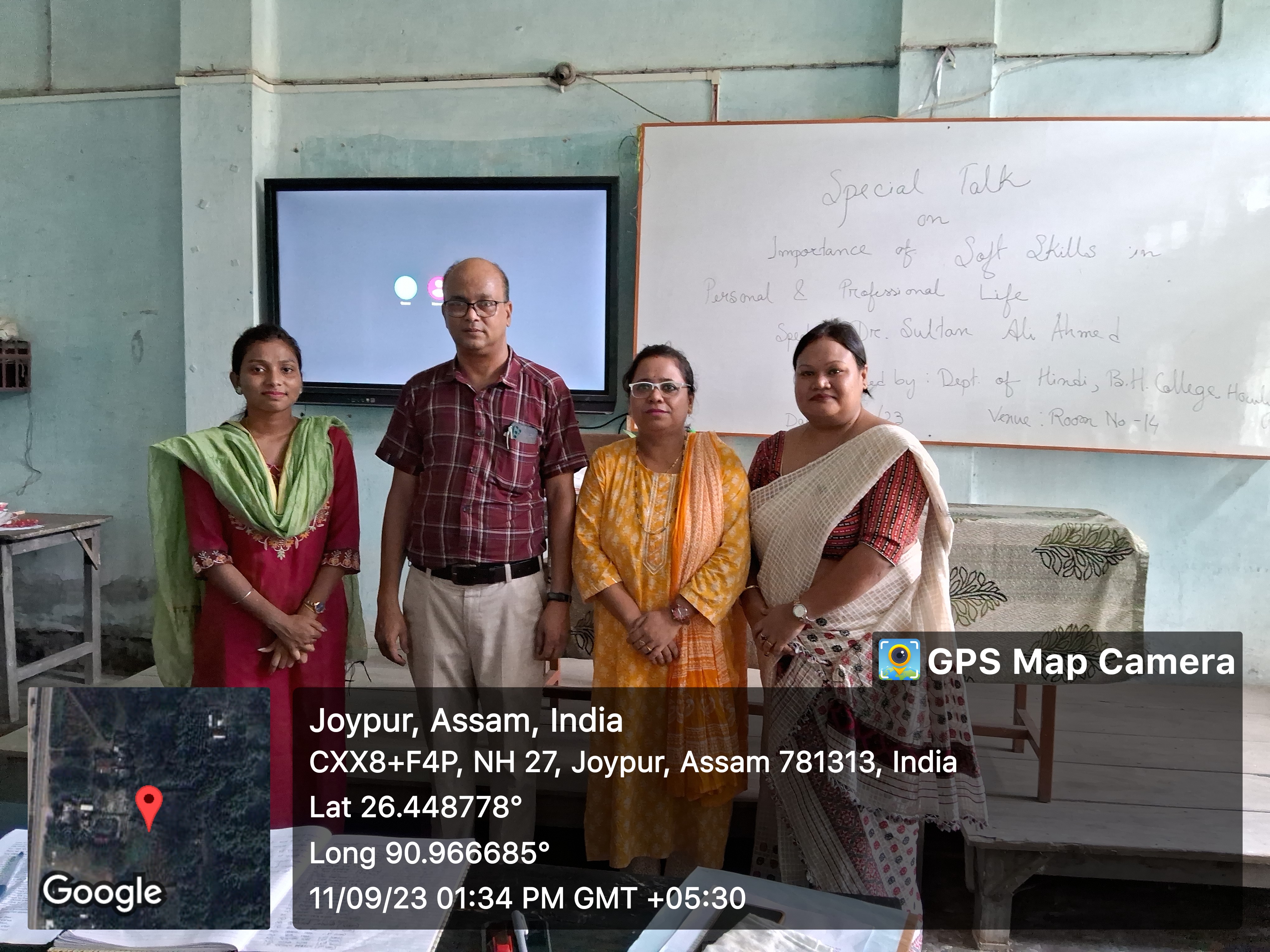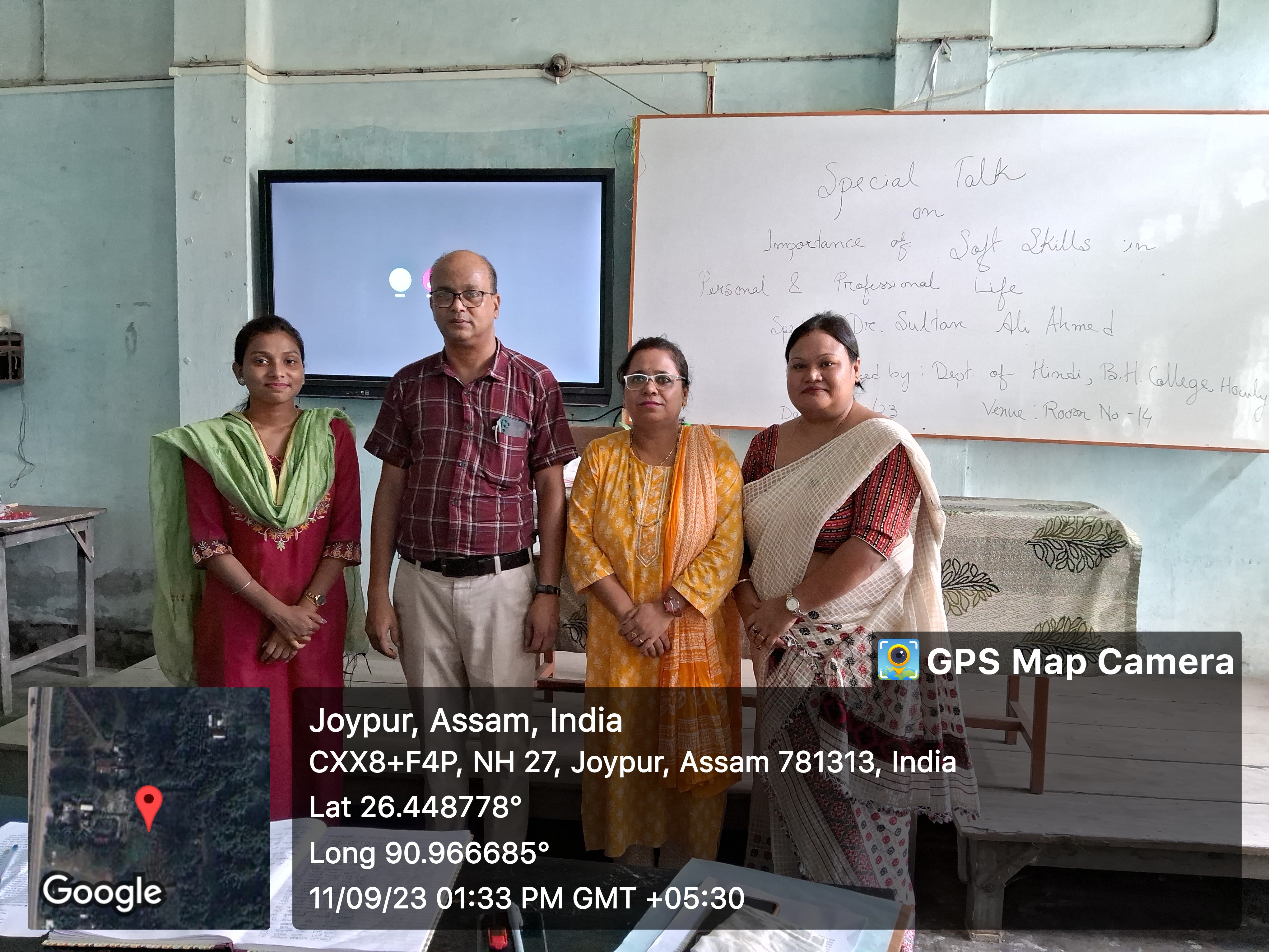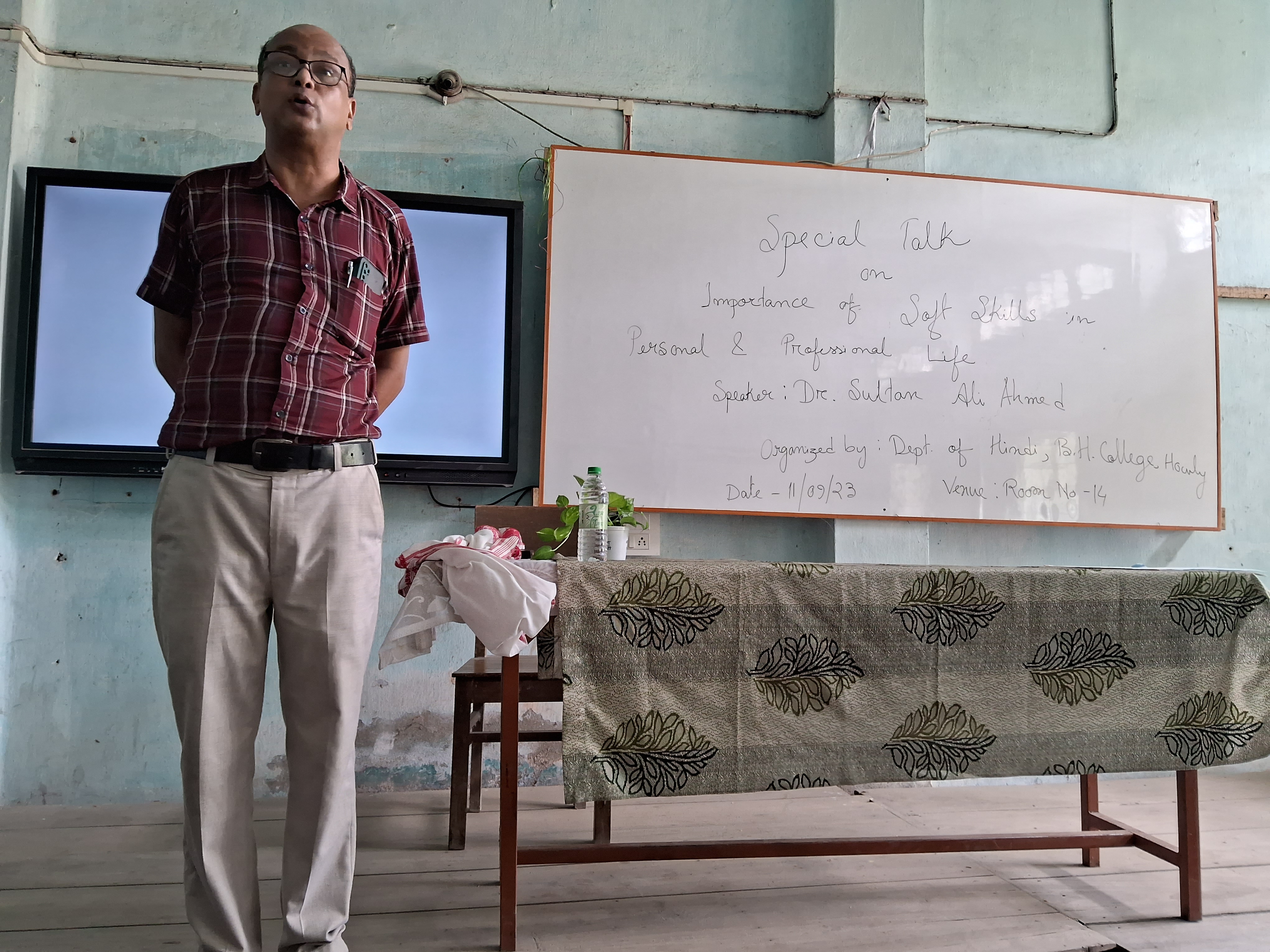 Description: A special talk is organized on 11/09/2023 by the Department of Hindi. The topic was Soft Skill and Its Importance in Personal and Professional life and the lecture was delivered by Dr. Sultan Ali Ahmed, Assistant Professor, Deptt. Of English, B.H. College. He delivered a very enlightening speech about soft skill. The resource person gave information on soft skill and its importance for students. Students were highly impressed and found new ideas through his enlightening speech.